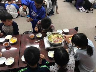 2日目の夕食は「かも鍋」でした。みんなでおいしくいただきました。
