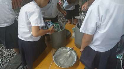 3日目午前の活動、アイスクリーム作りです。生クリームを順番にかき混ぜ、クリームが固まるまでかき混ぜるのに苦戦しているグループが多かったです。