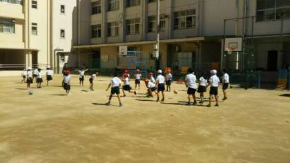 運動場では、2年生の子どもたちが元気にドッジボールをしていました。
