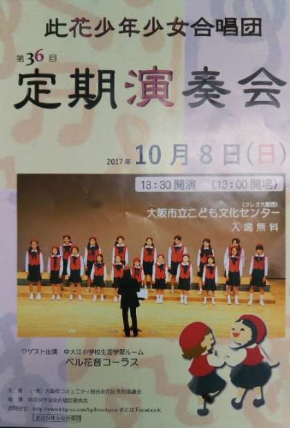 本校の児童も参加している「此花少年少女合唱団」の定期演奏会が開催されます。