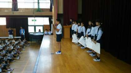 5年生6年生の各クラスから一名ずつ選ばれた、運営委員が、自己紹介と運営委員としての抱負を発表しました。