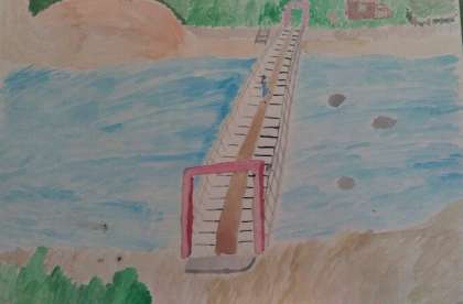高く長い吊り橋を渡ったのでしょう?夏の山間の爽やかな風が吹いているようです。