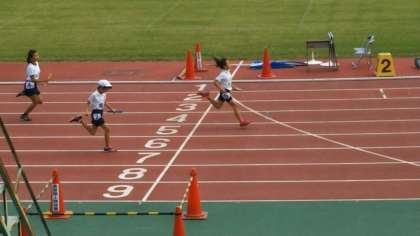 100メートル走では、本校の6年生男子が、58人中1位(13秒68)、5年生女子が66人中2位(15秒14)の好成績をあげました。