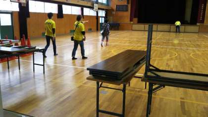 ※写真:地域のみなさま、PTAのみなさまが早朝から準備を進めてくださっています。