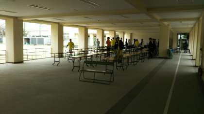 本日の世代間交流「島屋まつり」は、雨天のため、体育館・ピロティー・多目的室等で実施します。