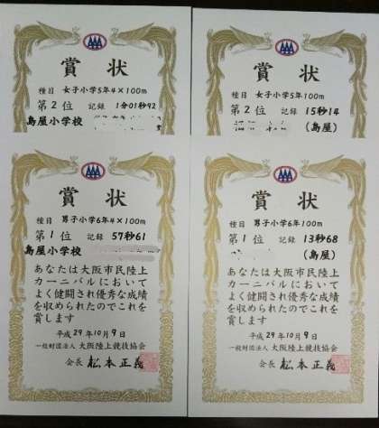 先日もお伝えしましたが、島屋小学校の子どもたちが、大阪市民陸上カーニバルで大活躍しました。