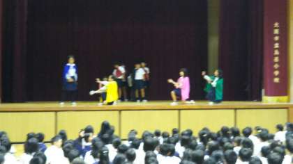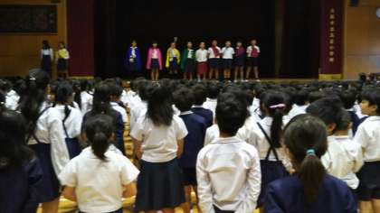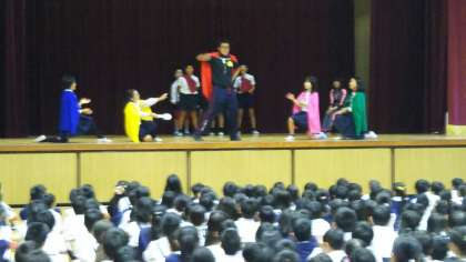 1・3・5年集会で、集会委員会の児童が、「しまやヒーローズ」を演じました。