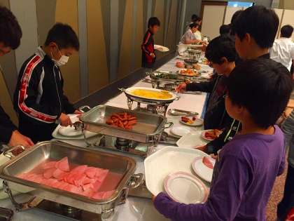 朝食も、ビュッフェ形式で好きなものを好きなだけいただきました。ホテル内の移動がエレベーターで時間がかかるのですが、みんな時間を守ろうとする態度が見受けられました。