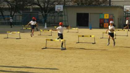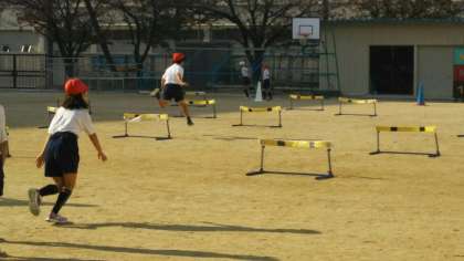 4年生が、体育でハードル走の学習に取り組んでいます。