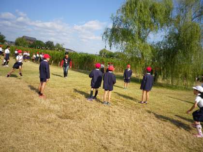 お弁当を食べた後は、敷地内の広い原っぱで遊びました。鬼ごっこやだるまさんがころんだ、長縄とびなどで体をうごかしたり、自然とふれ合い、草木や虫を観察したりと、楽しく充実した一日を過ごすことができました。