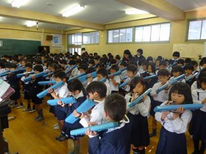 来週の学習発表会に向けて,音楽室で合奏の練習をしました。