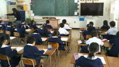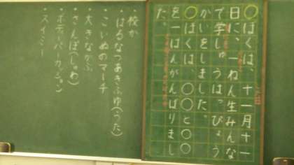 土曜日、1年生の教室をのぞくと、さっそく学習発表会で頑張ったことを、作文にまとめていました。
