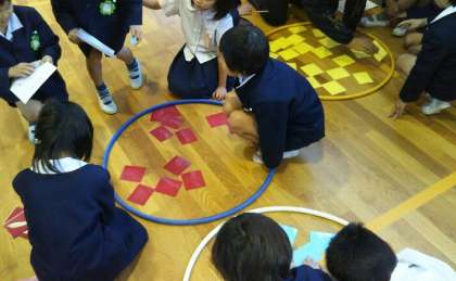 2年生が、生活科でつくったおもちゃでゲームのお店を開き、1年生を「おもちゃランド」に招待しました。