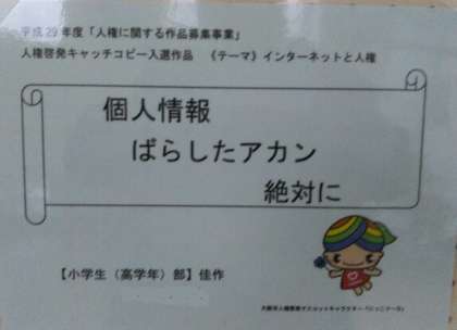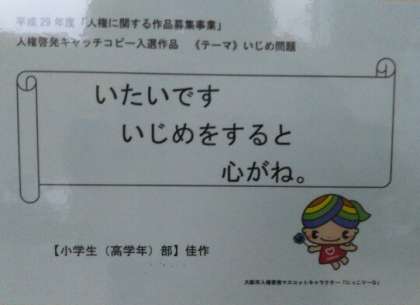 平成29年度「人権に関する作品募集事業」の「人権キャッチコピー」で、本校3年生の児童1人と6年生の児童2人が、佳作に選ばれました。