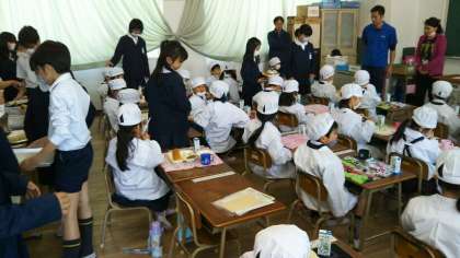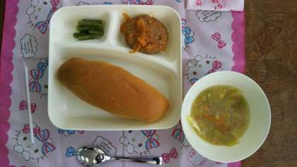 始業式の翌日、さっそく給食が始まり、1年生にとっては、小学校での初めての給食でした。