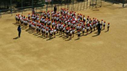 1年生5クラス全員で、体育をしました。初めてなので、並び方や体操を覚えました。
