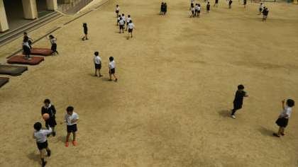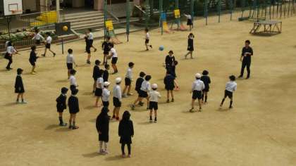 本校は、950人を超える児童数にしては運動場が狭いため、毎時間運動場で遊べるわけではありません。運動場で遊べる時間、ボールを使える時間、一輪車を使える時間・・・等割り振りを決め、譲り合って遊んでいます。