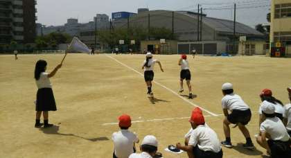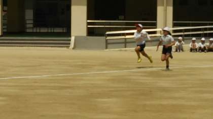4年生の子どもたちが、50メートル走の記録を測定していました。