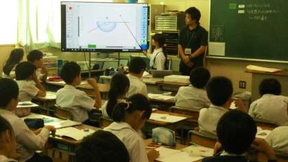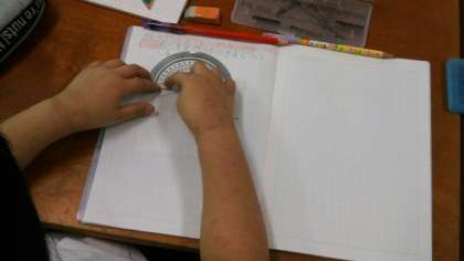 4年生は今、算数で、分度器の使い方を知り、いろいろな大きさの角を測る学習をしています。