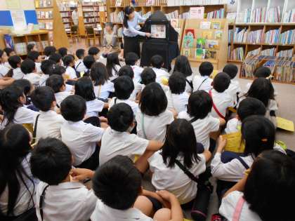 学校を出発し、長い道のりを歩き、やっとの思いで到着しました。このはな図書館の方にお話を聞いて、「このはな図書館には約70000冊の本がある。」と子どもたちはとても驚いていました。その他にも、どんな仕事をしているかや、図書館を利用している人の数などを教わりました。そして紙芝居や本の読み聞かせをしていただき、子どもたちはとても楽しそうにしていました。