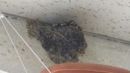 今年は、しっかりとした巣をつくり卵からかえった5羽のヒナがかわいい顔を見せてくれてます。親鳥は休むことなく巣を行き来し、餌を運んでいます。