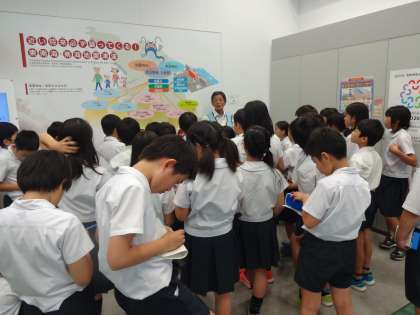 5年生は、西区にある津波・高潮ステーションへ社会見学に行きました。此花区は、海抜ゼロメートル地帯と言われ、南海トラフ地震により津波が発生したり、大型台風により高潮が発生したりすると建物の2階相当部分まで水没してしまうことが予想されています。このようなことは起こってほしくありませんが、もしそのようなことが起きた時には正しい知識を持って行動することが大切になってきます。そのため今年度より、津波・高潮ステーションの社会見学を取り入れることになりました。