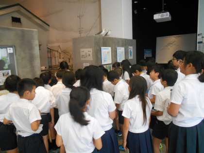 施設では、ガイドの方の説明のもと、東南海・南海地震と津波についての正しい知識や、高潮に備えた水門の役割についてくわしく学習しました。また、最後に体験した津波災害シアターでは、大きな映像スクリーンと床面音響スピーカーによる音響演出もあり、津波の恐ろしさについてより理解することができました。