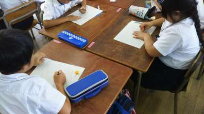 そして、自分たちのふだんの生活を見直し、もったいないことをしていないかを振り返りました。また、もったいなくないようにするためには、そのことをどう改めていけばよいかについても考え、意見を発表しました。
