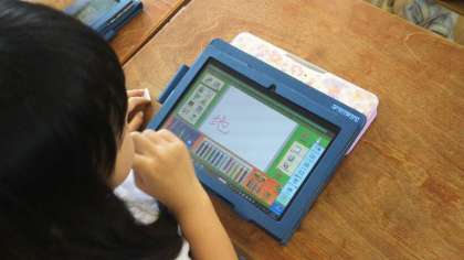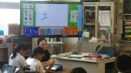 2年生が、タブレットPCを使って漢字の学習をしていました。