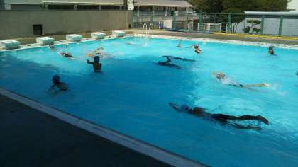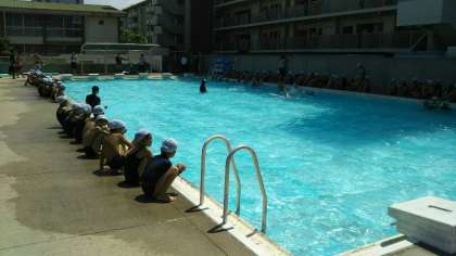 7月中は、午前中に水泳教室、プール開放を行っています。