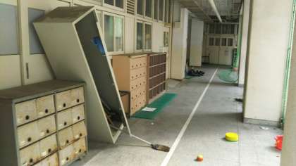 ⇒ロッカー等は、現状復帰し飛来物を取り除き清掃しました。