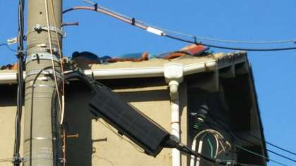 また、風の影響で屋根瓦が浮き上がったり落下したりしている所があります。真下を通らないでできるだけ離れて歩くようお話してください。