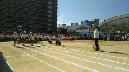 3年生にもなると電子ピストルの合図で、とても上手にスタートできていました。前の子と差が開いても、あきらめず最後まで一生懸命走っていました。
