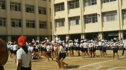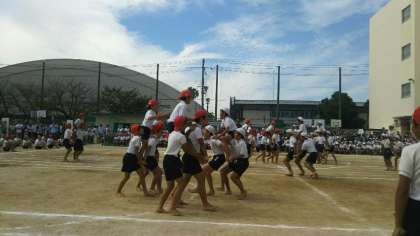 かわいい1年生の演技の後は、対照的に6年生の迫力ある騎馬戦。