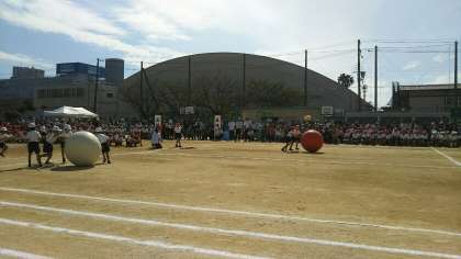 玉を転がして運ぶシンプルな競技ですが、2人の息を合わせて、テンポよく転がしていくのが結構難しい競技です。2年生、力を合わせてがんばりました。