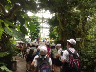 午前中は「咲くやこの花館」を見学しました。子どもたちは熱帯から極地、低地や高地のさまざまな植物を興味深げに見ていました。