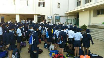 6年生の子どもたちが、楽しみにしていた修学旅行の朝を迎えました。よいお天気です。