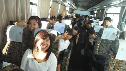 音楽をかけながら、ノリノリでバス、旅行を楽しんでいます。