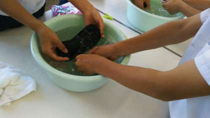 6年生のあるクラスは、家庭科で洗濯の実習をしました。