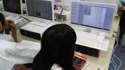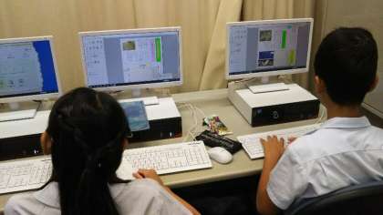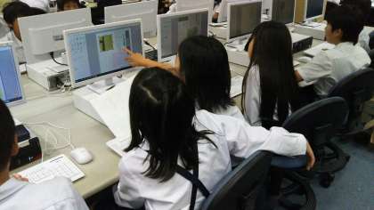 小学校のコンピュータルームには、1学級の児童が使えるデスクトップパソコンが40台設置されています。