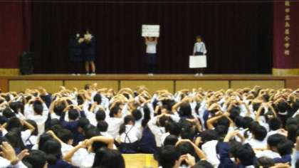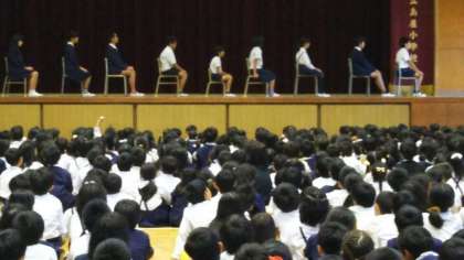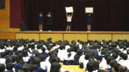 今日の全校集会は、健康委員会の発表でした。
