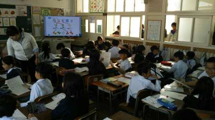 ※今年度と来年度は、新学習指導要領実施に向けての移行期間で、3年生4年生でも年間15時間の外国語活動を実施します。2年後の本格実施では、年間35時間の外国語活動(英語)の学習が始まります。