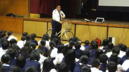 低学年では、道路の正しい横断の仕方や自転車の乗り方について、高学年では自転車の正しい乗り方や点検の仕方と交通ルールを中心に、お話やビデオで教えていただきました。