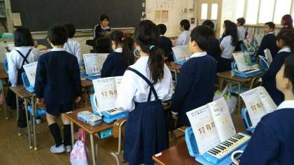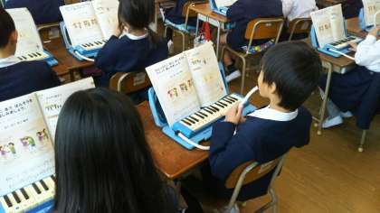 2年生が、音楽で「日本に伝わるわらべうたの楽しさやよさを感じ取りながら、聞いたり歌ったりする」学習をしています。