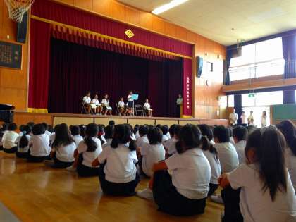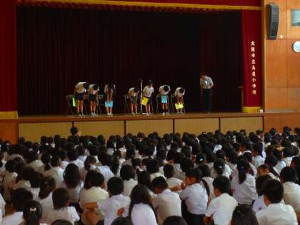 7月18日(金)、本校1学期の終業式を講堂にて行いました。比較的涼しい朝で800人を超える児童が集まったにしては、過ごしやすい気候でした。式では、校長先生のお話を聞き、夏休みに向けてそれぞれの児童が自分のめあてをもったことでしょう。その後に、「児童代表のことば」として、3年生と6年生の代表7名が、1学期に頑張ったことを全校児童の前で堂々と発表しました。