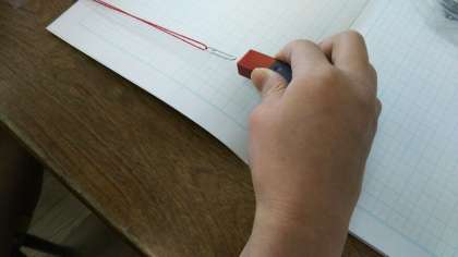 磁石とゼムピンなどを使って、磁石には鉄を引き付ける力があることなどを試しています。とても楽しそうに学習していました。