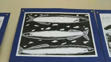 白と黒のバランスを考え、刀(とう)による彫りあとの違いも確かめながら完成させました。