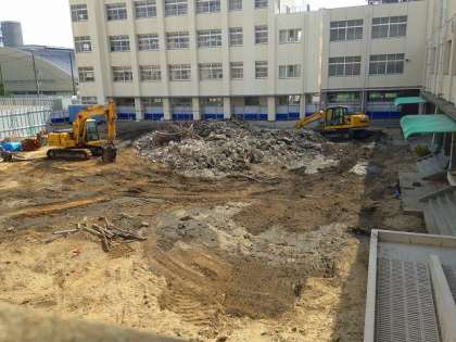 子どもたちがいない夏休み、校舎の増築工事は急ピッチで進められています。これまでの工事の進捗状況を写真でお伝えします。