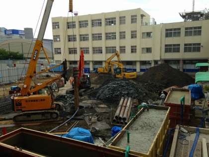 1枚目(5月24日)建築予定地の地下から大量のがれき、地下水が出てきた。