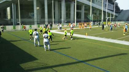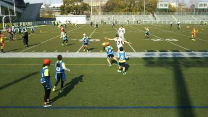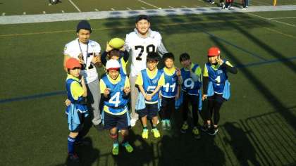 関西のアメリカンフットボールリーグに参加している大学生のお兄さんお姉さんが、練習のサポートや試合中に応援をしてくれました。
